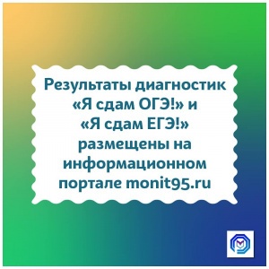 В личных кабинетах общеобразовательных организаций на портале monit95.ru опубликованы результаты диагностик в 9-ых классах в рамках проектов «Я сдам ОГЭ!»