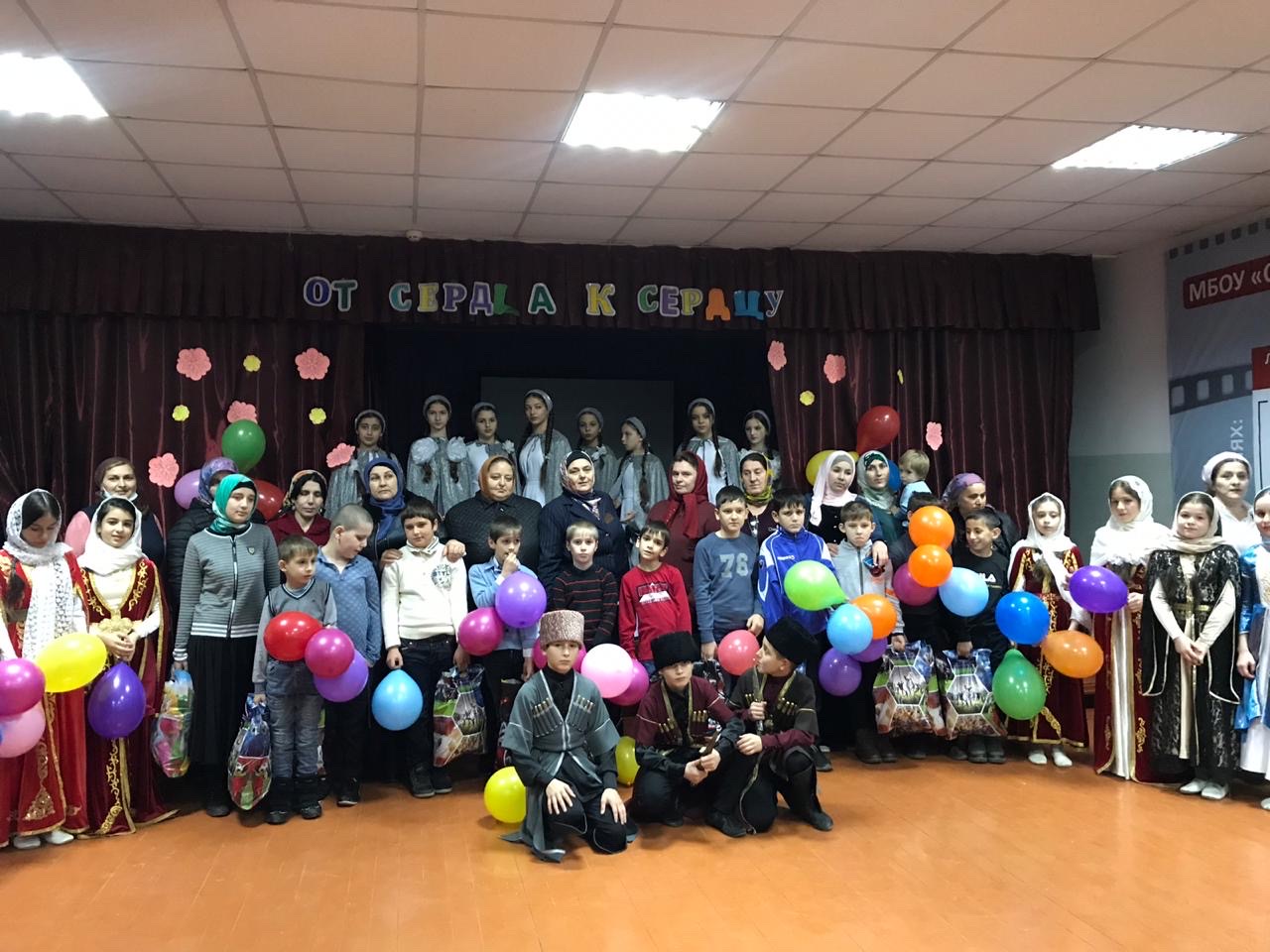 03.12.19г. в МБОУ СОШ 35 в рамках акции "От сердца к сердцу", приуроченной Дню инвалидов активистами отряда'Юные Кадыровцы" администрацией школы совместно с директором школы Ахматхановой М.М. была организована концертная программа для детей с ограниченными возможностями здоровья, в конце мероприятия детям вручили подарки и сладости