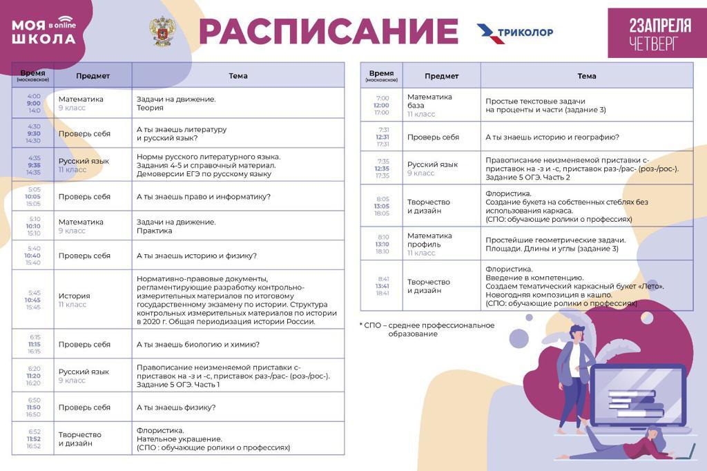 Расписание на 23.04.2020