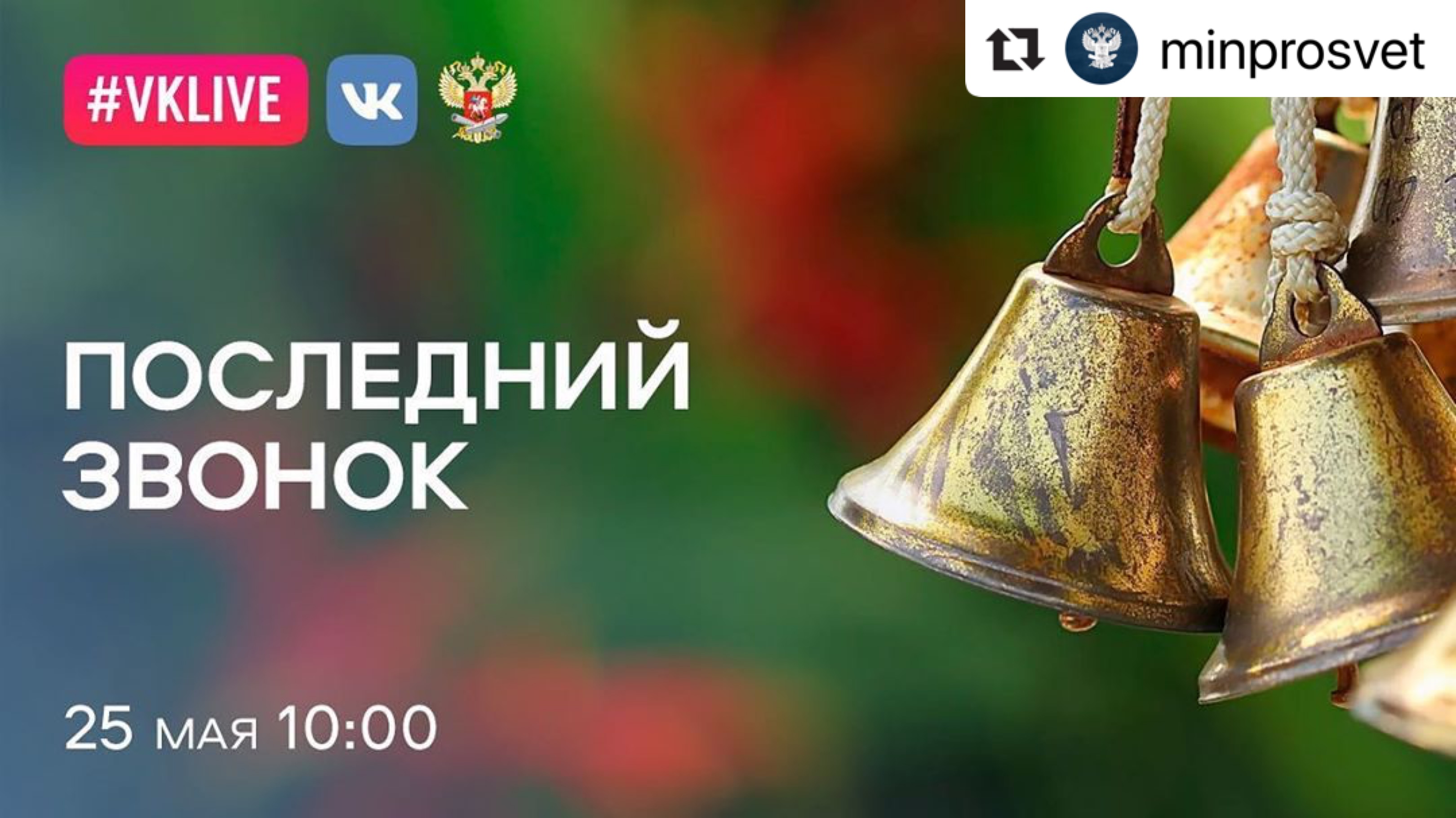 🔥Друзья! В понедельник, 25 мая, мы приглашаем вас принять участие во Всероссийской акции «Последний звонок – 2020», которую Минпросвещения России совместно с Международной ассоциацией студенческого телевидения и Российским движением школьников проводит в поддержку выпускников страны!