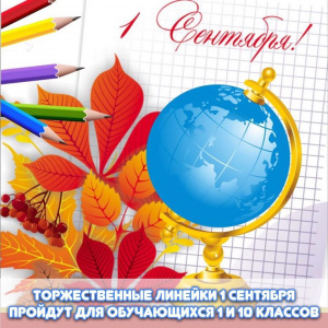 Торжественная линейка для учащихся 1-ых и 10-ых классов состоится 1 сентября 2020 года в 09.30 приказы