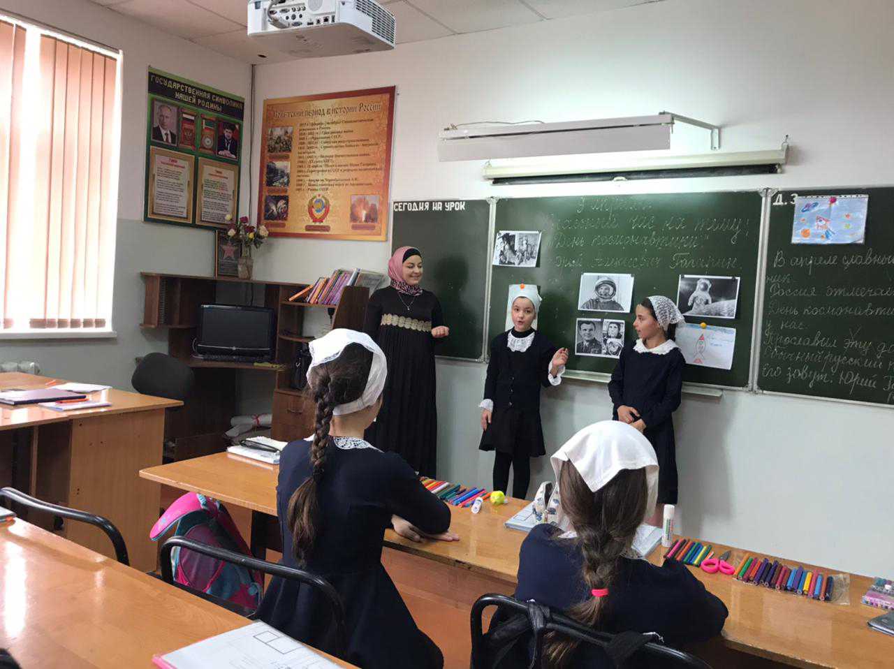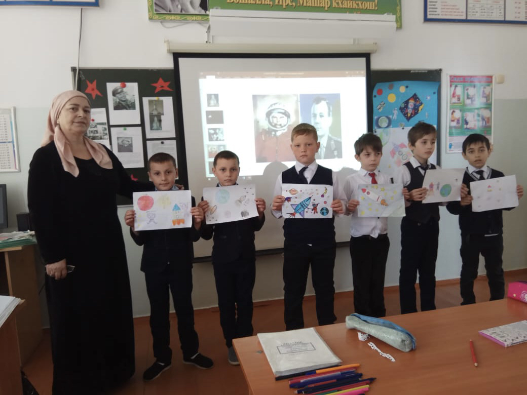 В МБОУ «СОШ 35» г. Грозного с 09.04.по.12.04.21.были проведены мероприятия, приуроченные к 60 летию полёта Ю.Гагарина в космос!