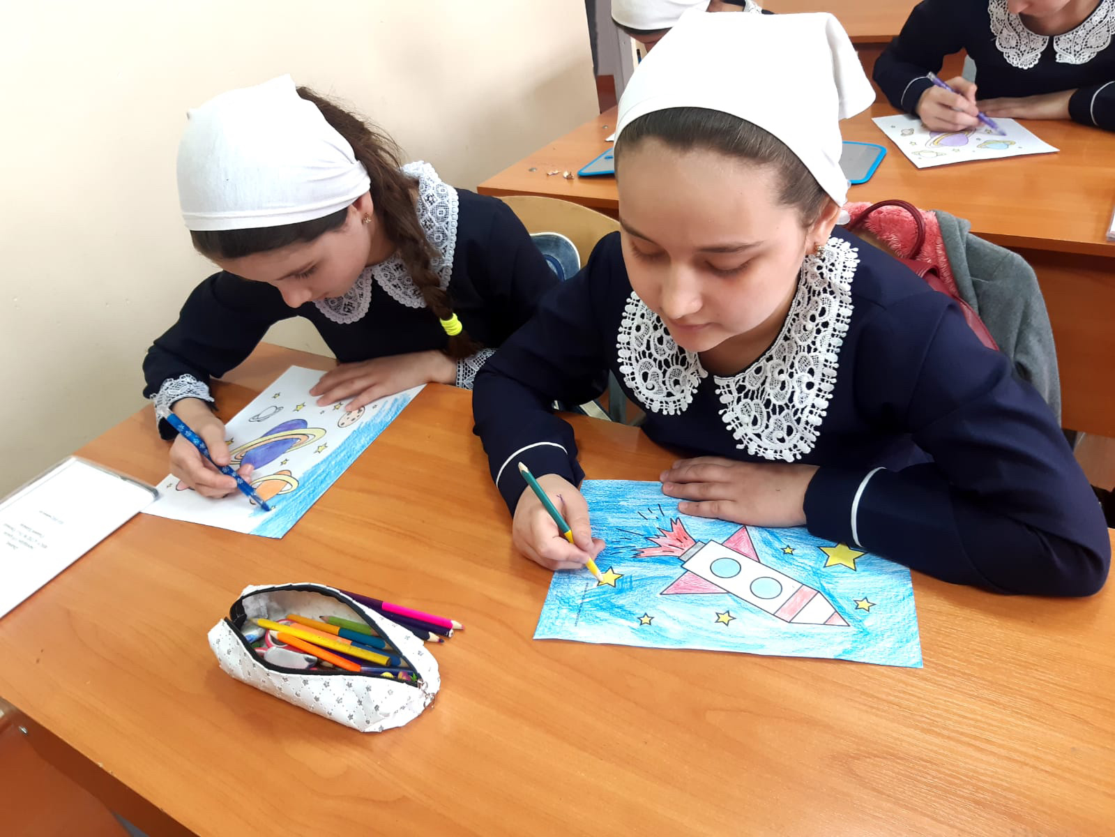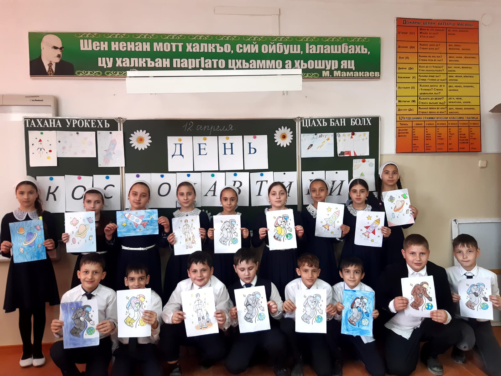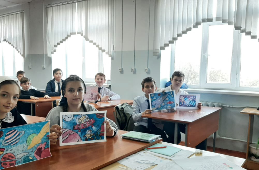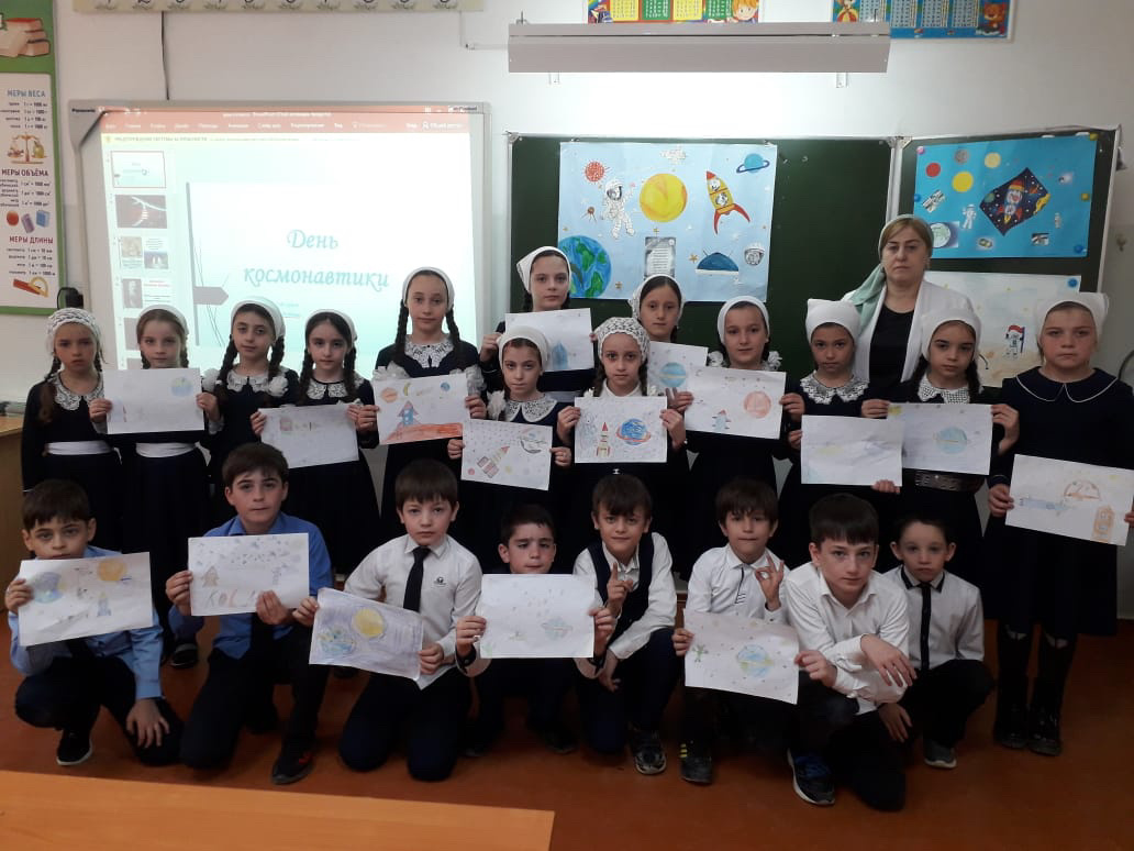 В соответствии с планом работы Департамента образования Мэрии города Грозный и плана работы школы, в целях развития познавательной деятельности учащихся, воспитания патриотизма поколения с 10.04.по.13.04. В МБОУ СОШ «СОШ 35» прошли классные часы " Космос -это МЫ", "Гагаринские уроки", конкурс рисунков , приуроченные Международному дню Космонавтики!