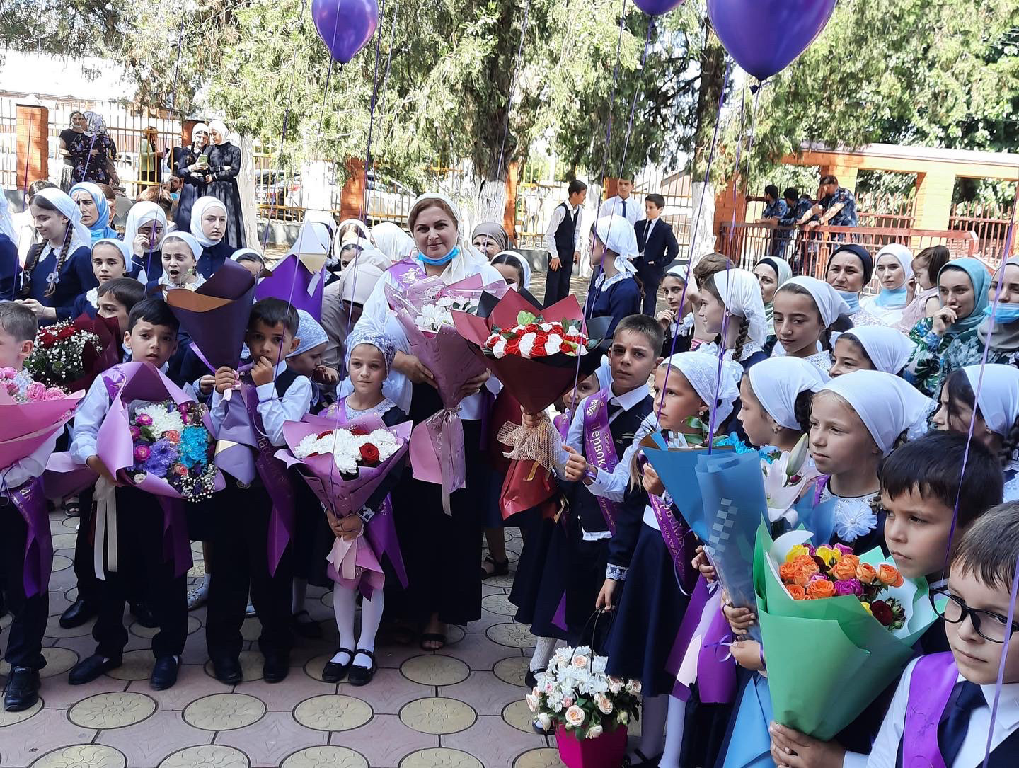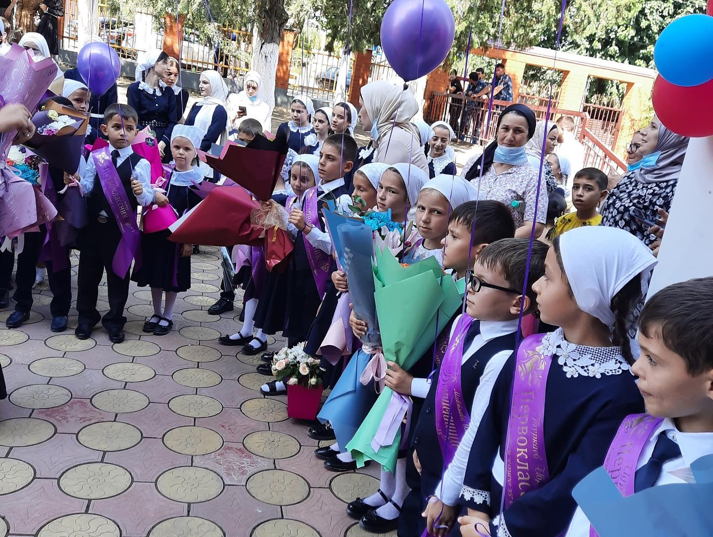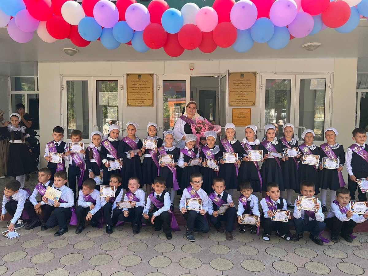 В МБОУ «СОШ 35» г. Грозного , прошла торжественная линейка посвящённая началу нового учебного года. Линейка была начата с поднятия государственных флагов и исполнения гимнов.Первоклассников встречали почётным строем отличники. В качестве ведущих приглашены были бывшие выпускники школы.