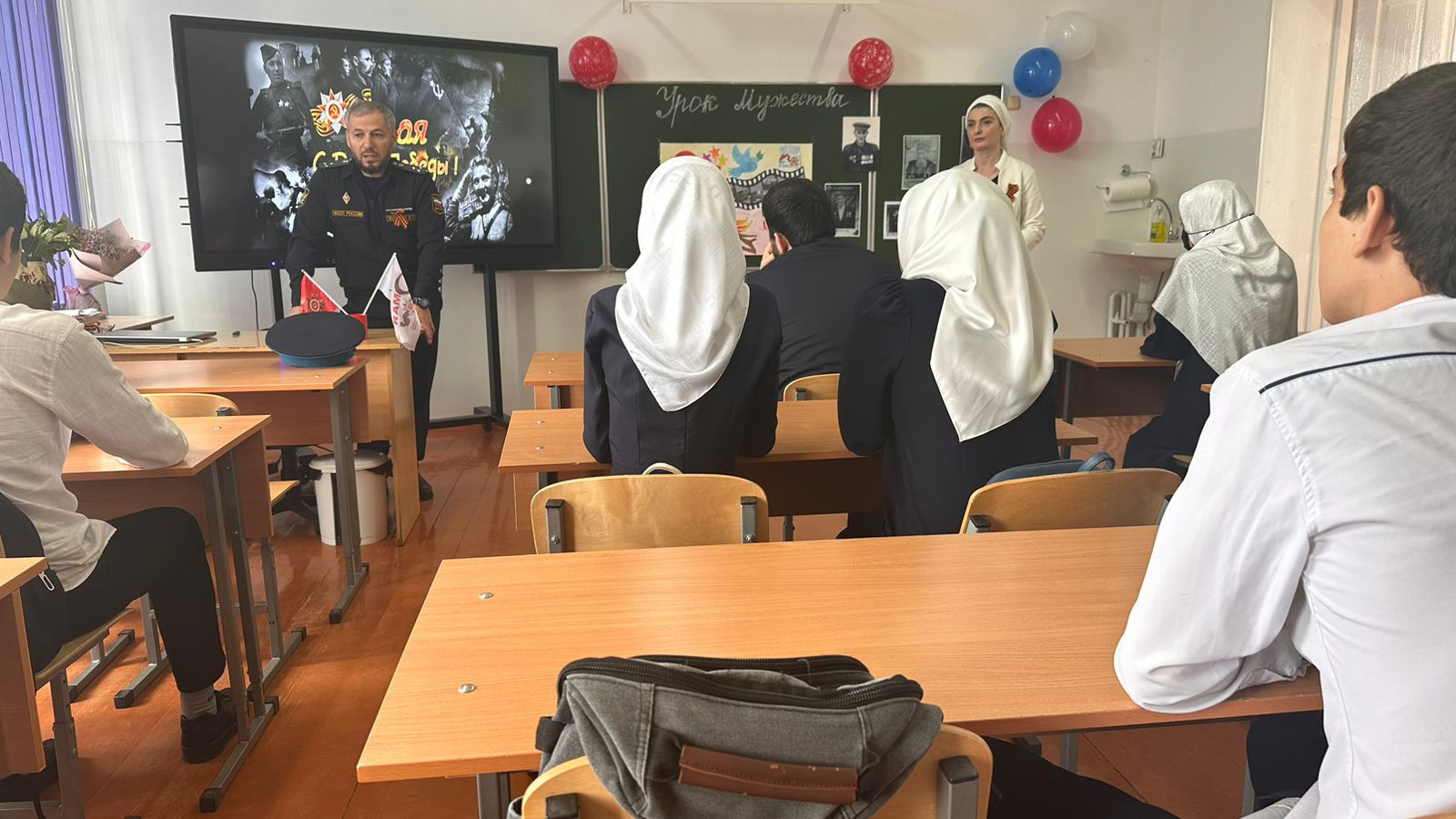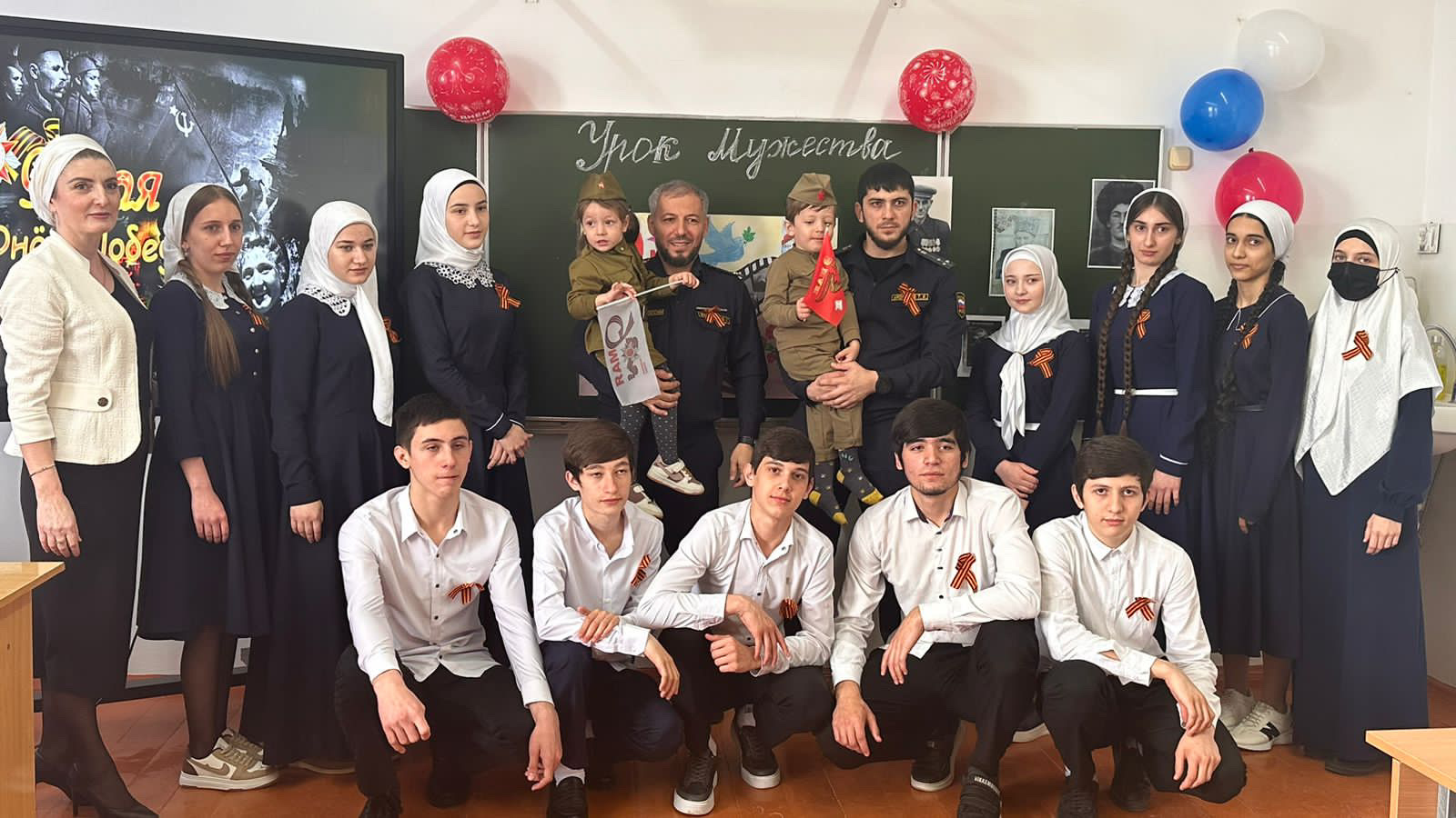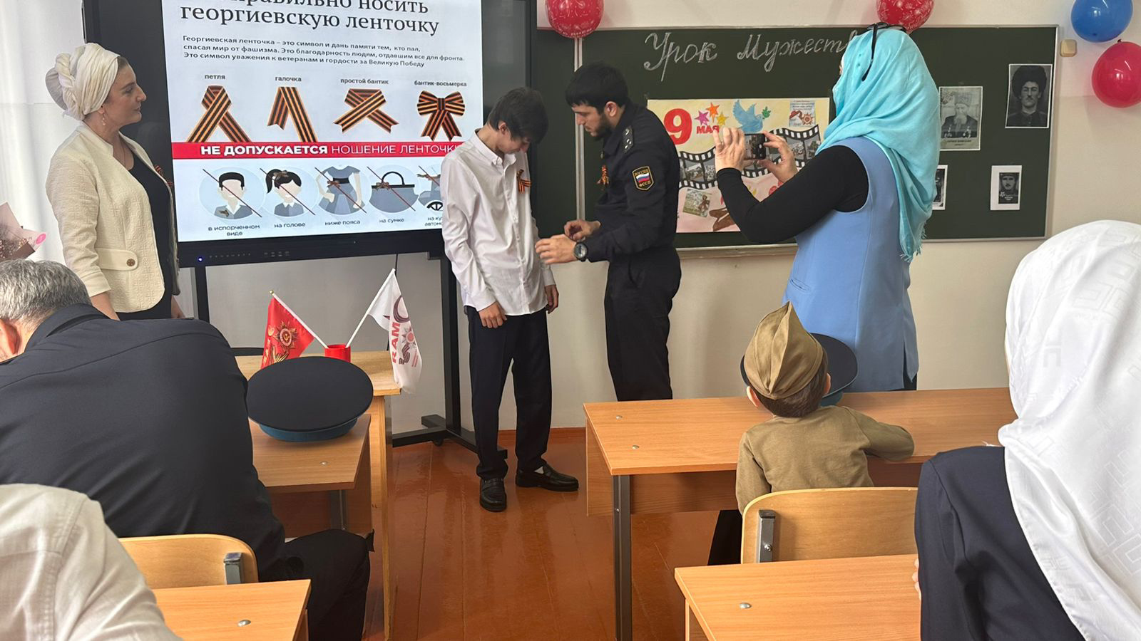 В ходе открытого урока представители Управления Федеральной службы судебных приставов по Чеченской Республике завязали детям и учителям «георгиевские ленточки», а также рассказали о необходимости бережного отношения к главному символу мужества, напоминающему о героях Великой Отечественной войны.