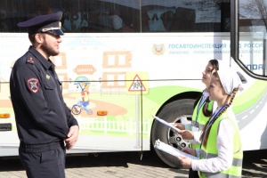Сотрудники Госавтоинспекции провели практические занятия, в ходе которых детям были даны основные инструкции по безопасному поведению с использованием автобуса-тренажера «Школа дорожной безопасности».