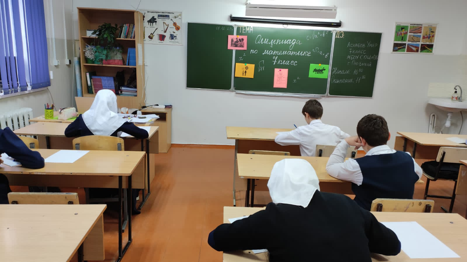 В МБОУ «СОШ 35» г.Грозного прошёл отборочный тур Олимпиады по математике среди учащихся 7х классов. Олимпиада организована ФГБОУ ВО "Ярославский государственный университет". В Олимпиаде приняли участие 15 учащихся 7 классов, проявившие особый интерес к изучению математики.