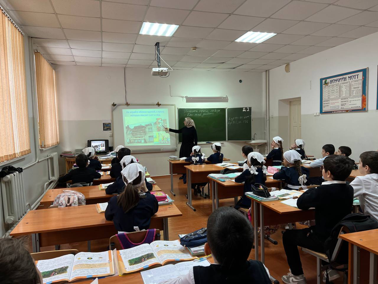 МБОУ «СОШ № 35» города Грозного провела уроки патриотизма и безопасности на дорогах в зимний период. Ученики и педагоги активно приняли участие в пятиминутках и классных часах, посвященных правилам поведения на скользких дорогах в зимний период.