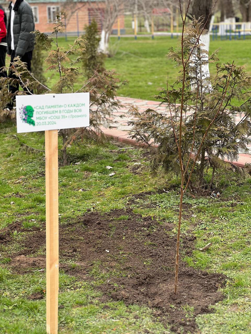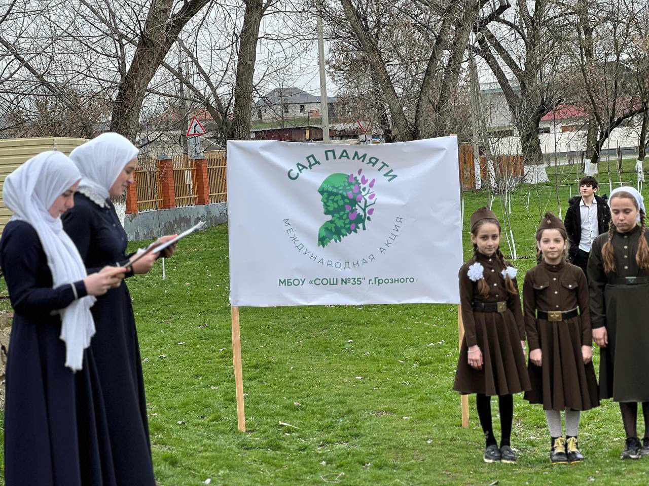 Учащиеся МБОУ «СОШ 35» г. Грозного приняли участие в Международной акции «Сад памяти», которая впервые прошла в от 2020 году. Ее цель – создание зеленых памятников каждому, кто погиб в годы Великой Отечественной войны. В акции приняли участие учащиеся 9-10 классов, так и учащиеся 4-х классов внесли свой вклад в проведение акции «Сад Памяти». Ребята высадили фруктовые то деревья, которые будут памятным воспоминанием о погибших воинах, защищавших нашу страну во время Великой Отечественной Войны.