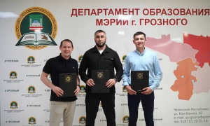 В столичном Департаменте образования Мэрии состоялась рабочая встреча заместителя Мэра - начальника Департамента образования Мэрии Грозного Зелимхана Ахматова с начальниками Управлений образования Казани и Уфы - Иреком Ризвановым и Азатом Батыршиным.