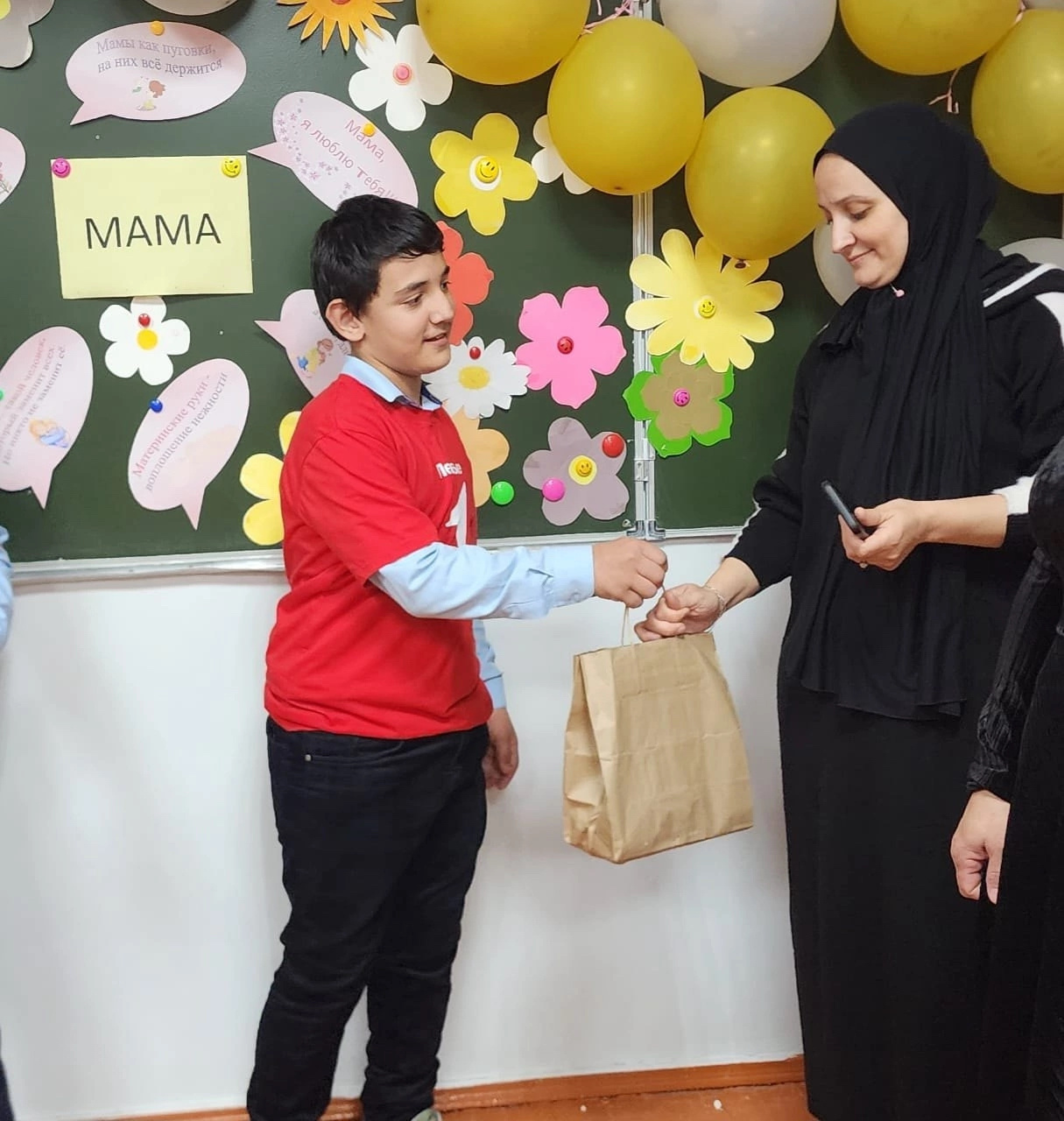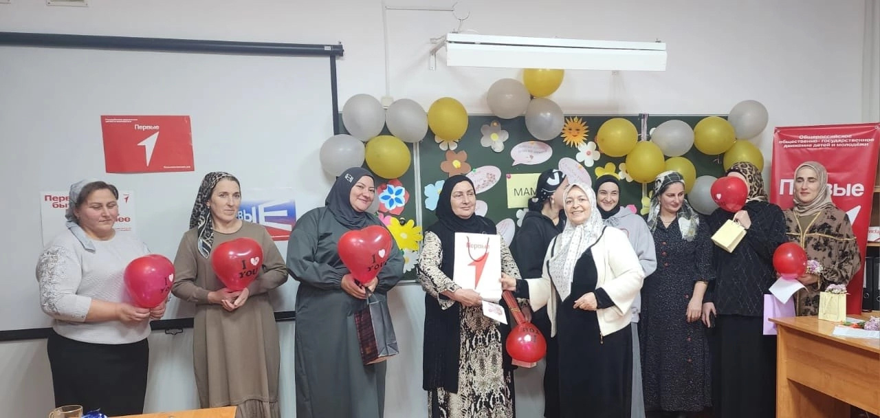 В преддверии этого праздника Активисты «Движения Первых МБОУ «СОШ № 35» г. Грозного под руководством советника директора по воспитанию Ибрагимовой З.М., подготовили праздничное мероприятие для своих мам. Акция добрых дел «Помоги своей маме!», единый классный час «Мама – первое слово, главное слово…», стихи, песни, весёлые конкурсы и инсценировки доставили всем незабываемые минуты радости. Особенно приятно мамам и бабушкам было получить подарки, сделанные руками своих детей, внуков, и конечно, подарок для многодетной мамы от Активистов «Движения Первых». Мероприятие закончилось чаепитием.