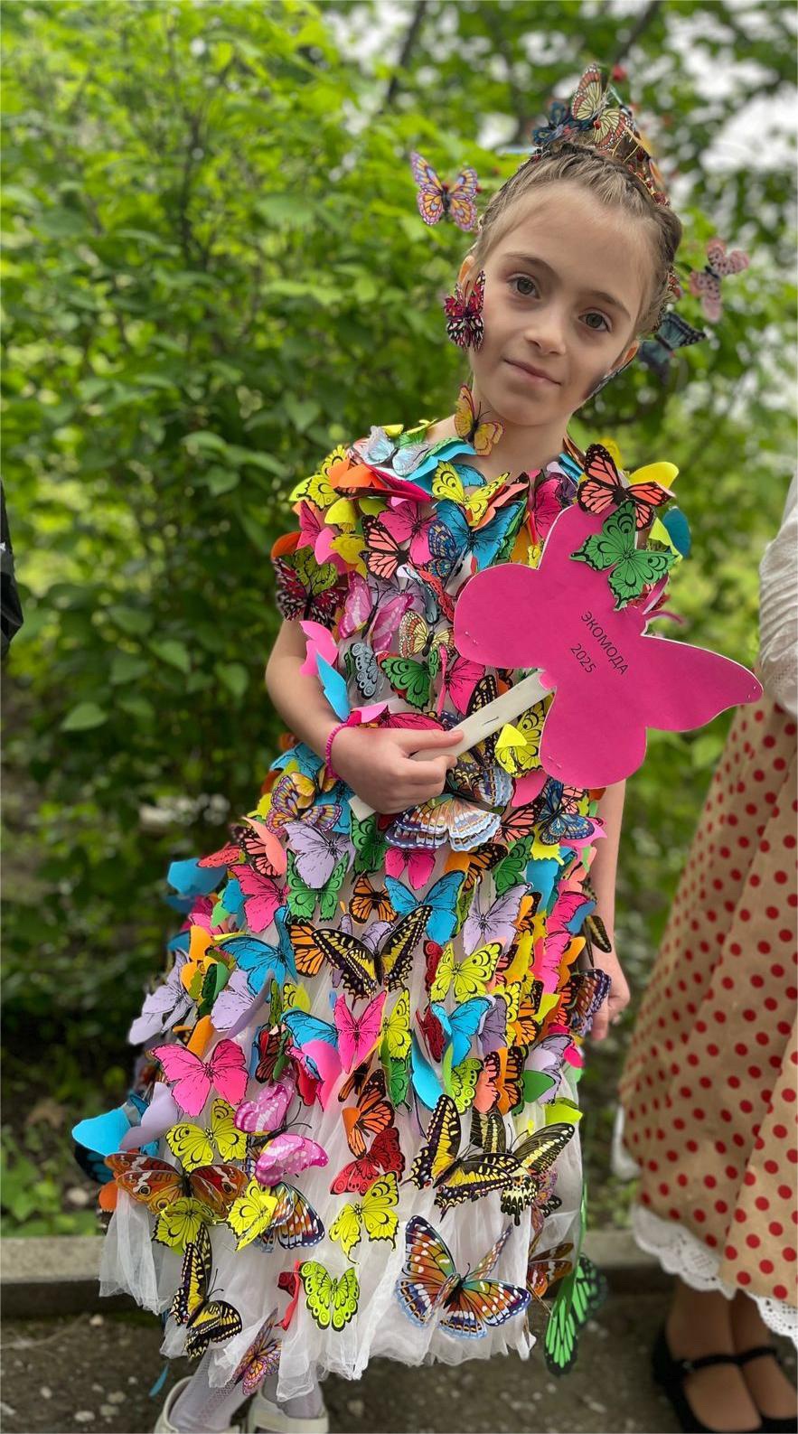 В конкурсе принял участие около 150 обучающихся школ г. Грозного. Халдыхароева Амира, ученица 3 класса представляла платье из вырезанных бумажных бабочек. Амира заняла 2 место в конкурсе.