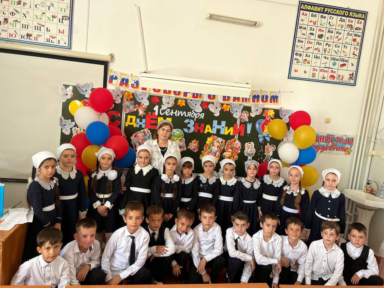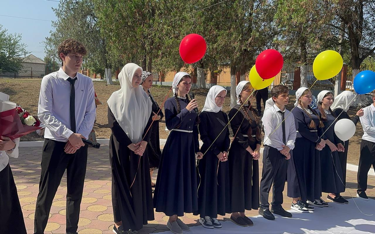 В МБОУ "СОШ 35" г.Грозного прошла торжественная линейка, посвященная Дню знаний. Школьный двор, украшенный яркими шарами и цветами, наполнился взволнованными лицами учеников, родителей и учителей. Особенно трогательно выглядели первоклассники, держащие в руках букеты гладиолусов, с широко открытыми от любопытства глазами.