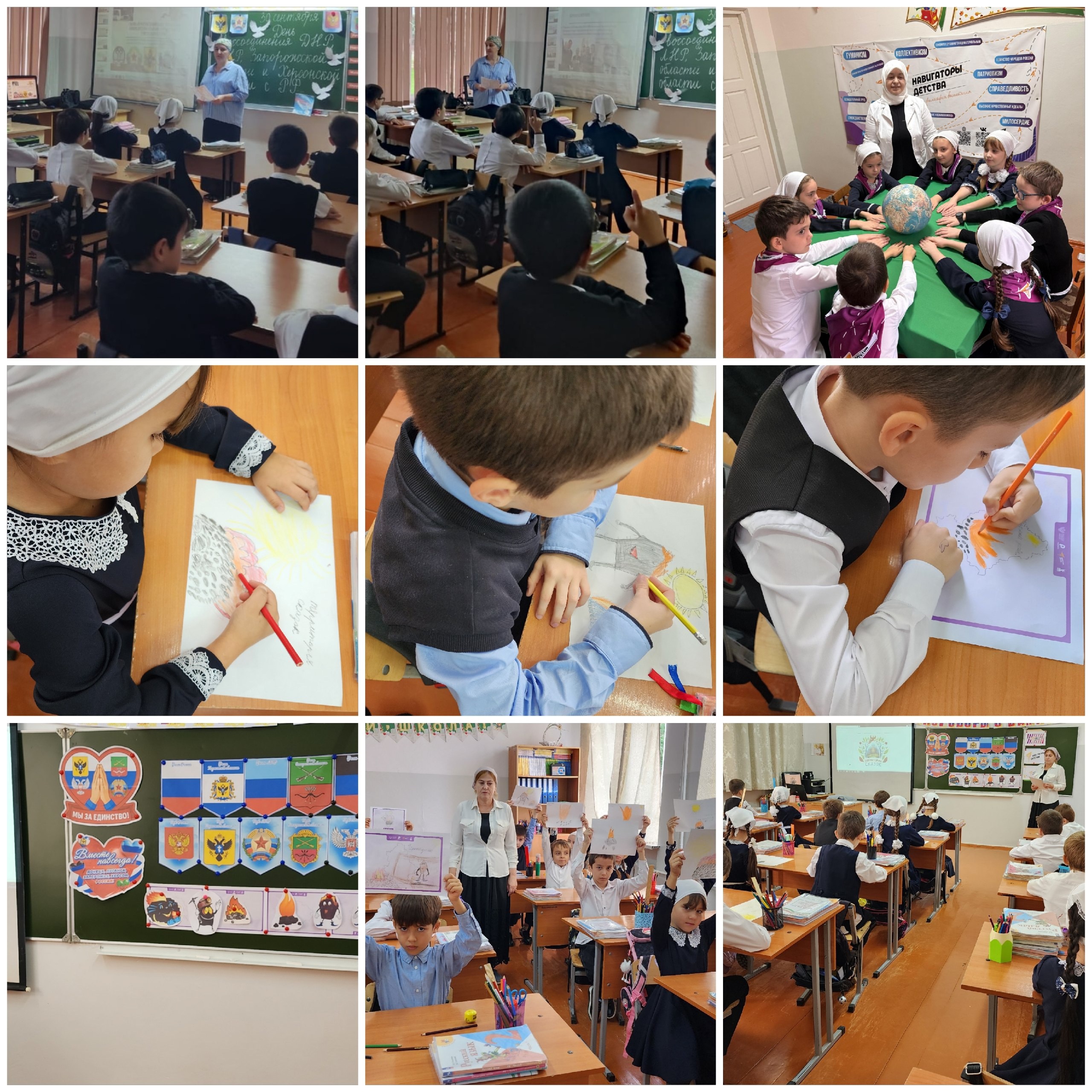 Для каждого жителя России 30 сентября – это праздничный день, потому что он подарил надежду на мир, порядок и веру в будущее. Каждый житель России понимает важность значения этого исторического шага. В преддверии этого праздника обучающиеся МБОУ «СОШ № 35» г. Грозного под руководством советника директора по воспитанию Ибрагимовой З.М., провели мероприятия, посвященные этой знаменательной дате. Классные руководители 5-11 классов провели классные часы, где обучающихся познакомили с историей возникновения праздничной даты и подробнее рассказали о присоединении новых территорий. Обучающиеся начальных классов приняли участие в акции «Вектор дружбы».