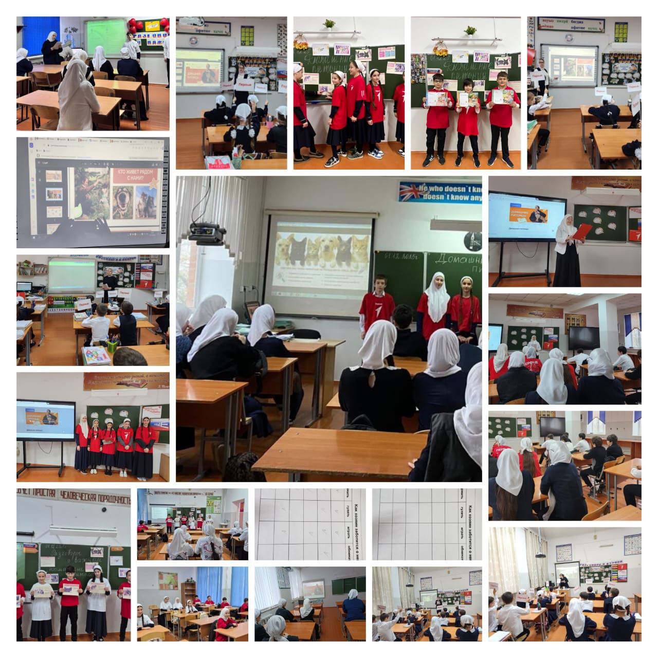 Сегодня в МБОУ «СОШ № 35» г. Грозного среди обучающихся 1- 11классов, было проведено внеурочное занятие РОВ на тему «Домашние питомцы». Общий охват обучающихся: