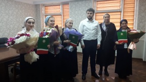 29.04.2019Поздравляем Салманову М.М. - учителя чеченского языка и литературы МБОУ "СОШ № 35" г. Грозного, с вручением начальником Департамента образования Мэрии г.Грозного Хатуевым Р.С. Почетной Грамоты Главы ЧР, за вклад в развитие и сохранение чеченского языка, безупречную добросовестную работу.